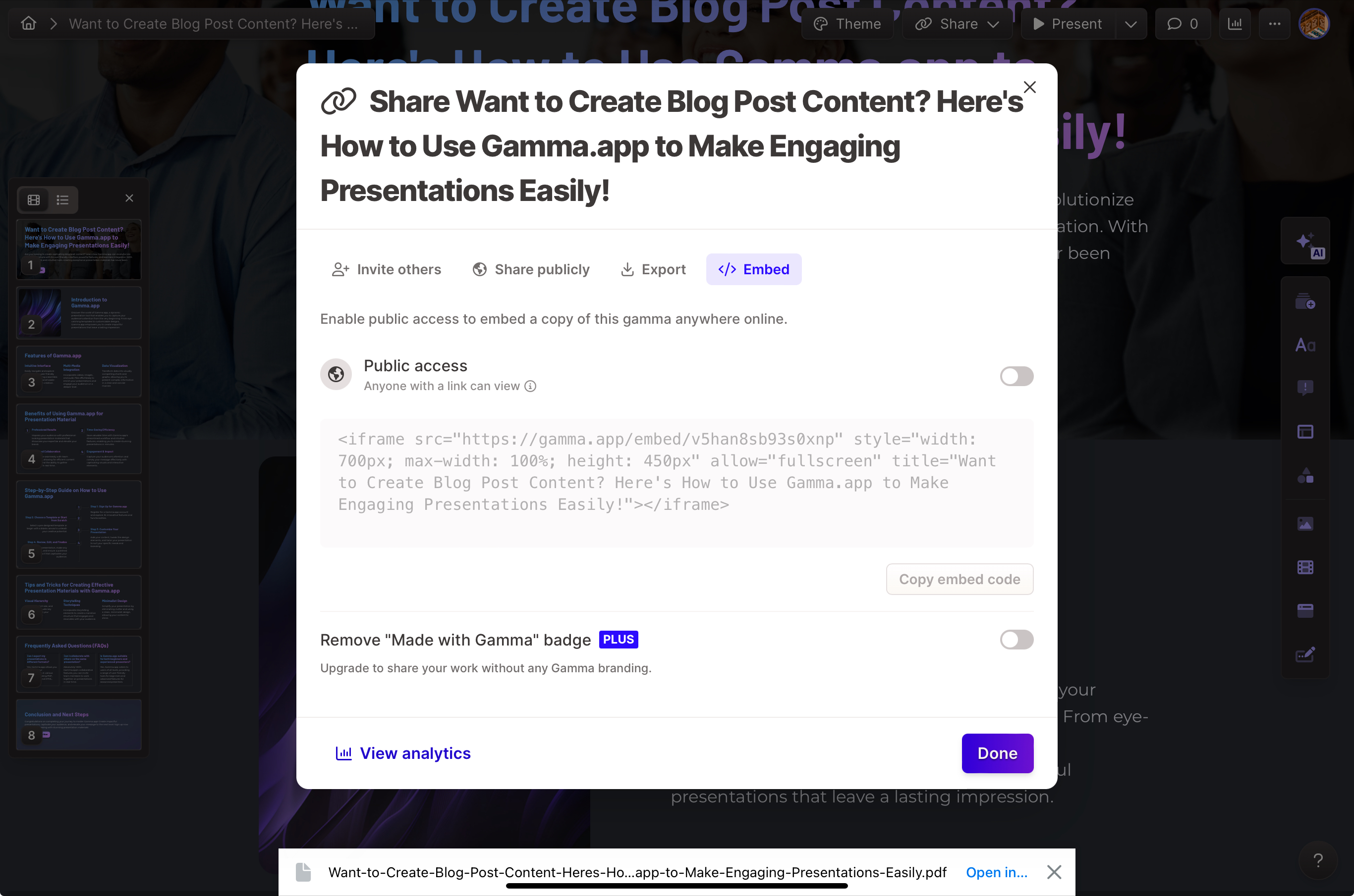 - 무료 버전은 감마랑 같이 만들었다는 워터마크가 달려 있는데 유료 버전에서는 지울 수 있다